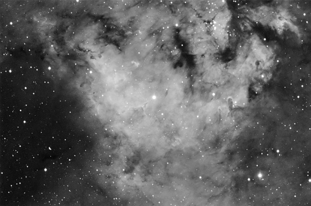 Subject: SH2-171 (NGC7822) Ha Nebula in Cepheus A composite of 24, 20 Minute Sub Exposures Filter, Astro-Don 6nm Ha Camera: SBIG ST8-XME Processing: Maxim and Photoshop Telescope: AP 105 EDF With Field Flattener Astro-Physics AP-400 GTO Mount Roadrunner Observatory, September 22nd & 24th 2005 |