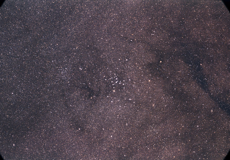 Subject: M7 in The Milky Way in Scorpius Exposure: One 40 Minute on Fuji Provia 400 Push 1 stop Processing Adobe Photoshop Telescope: Astro Physics 180 EDF Starfire 6 x 9 Back on 4 x 5 Camera AP 1200 Mount and ST-237 Guider June 28, 2003 SDAA Club Site at Tierra Del Sol California |