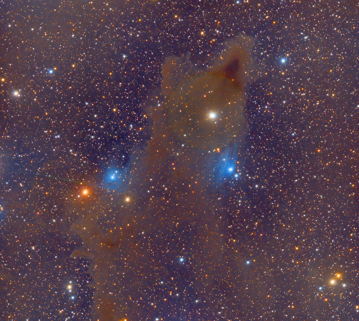 | Telescope: Astro-Physics 160 EDF | Designation: vdB 149 is a reflection nebula visible in the constellation Cepheus. vdB 149 seems to be part of the big dark LDN 1235 The nebula including this and the nearby vdB 150, LDN 1235 is probably a so-called red emission nebula , or a cloud at high galactic latitudes that becomes visible through the interstellar radiation field, with a low surface brightness and therefore looking obscure if observed in the visible light band. (Wiki) |